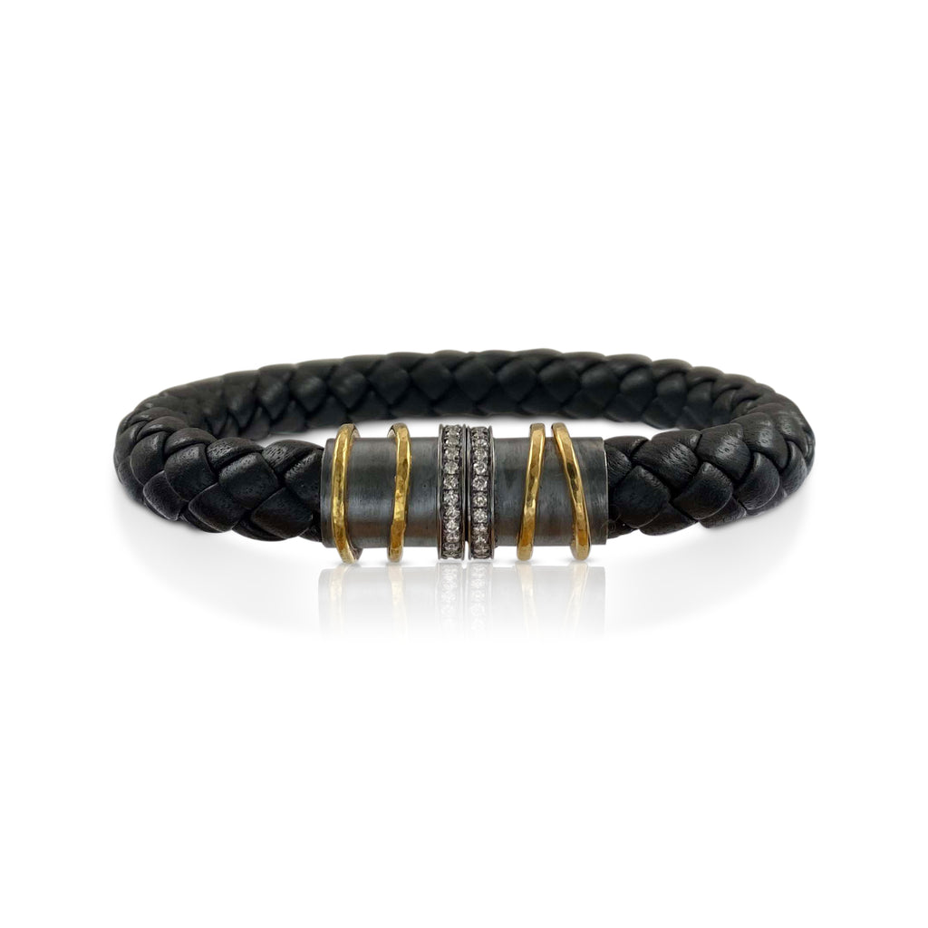 Magnet Leather Bracelet with Oxidized Silver, Gold Ribs and Diamond Clasp - $2,800.00