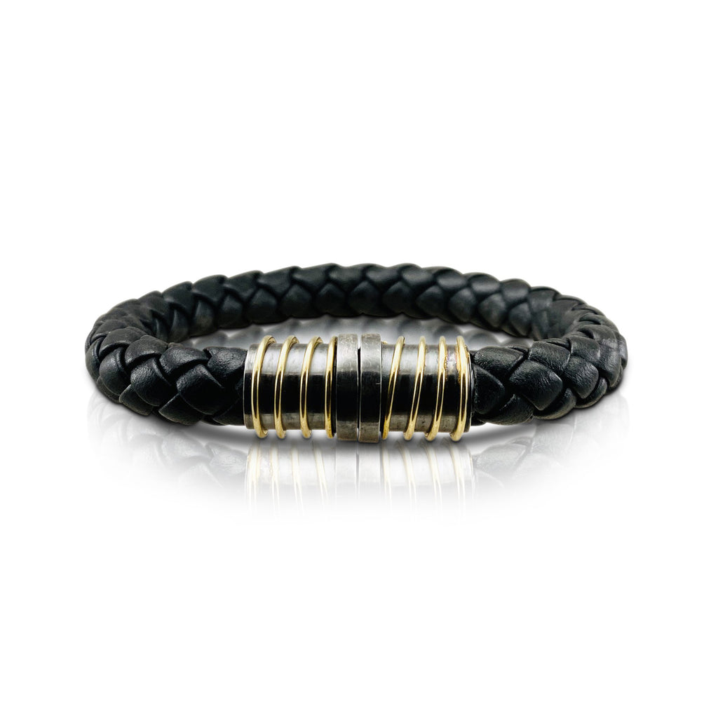 Magnet Leather Bracelet with Oxidized Silver and Gold Spiral Clasp - $775.00