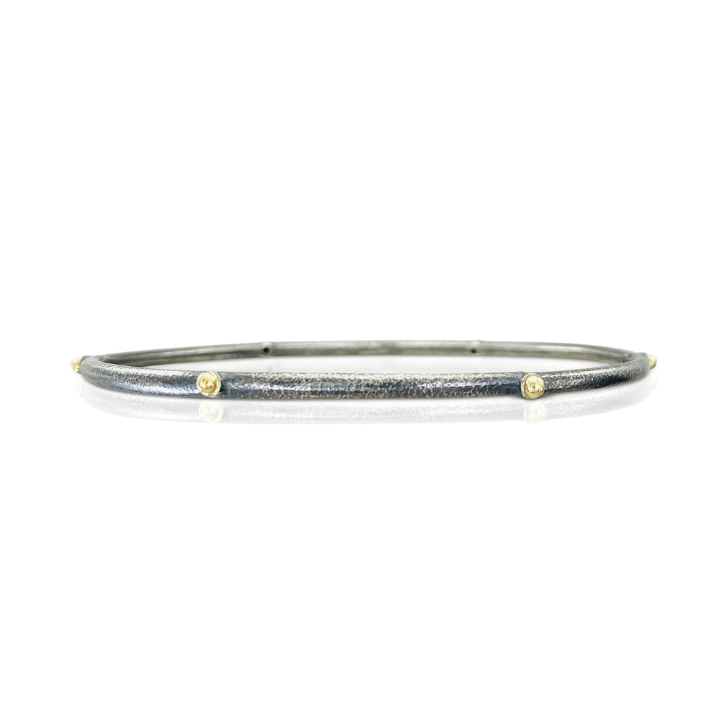 Sputnik Bangle in Oxidized Silver with Gold Balls - $500.00