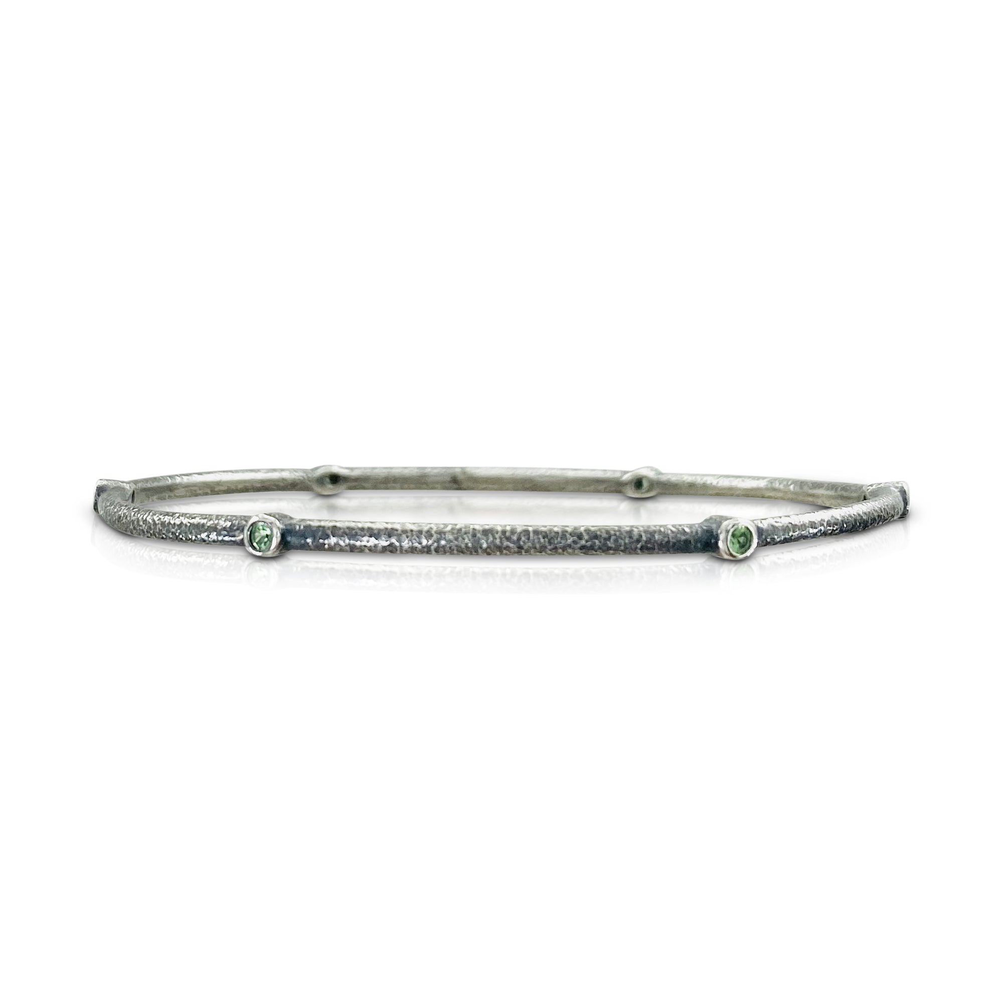 Sputnik Bangle in Oxidized Silver with Green Garnets