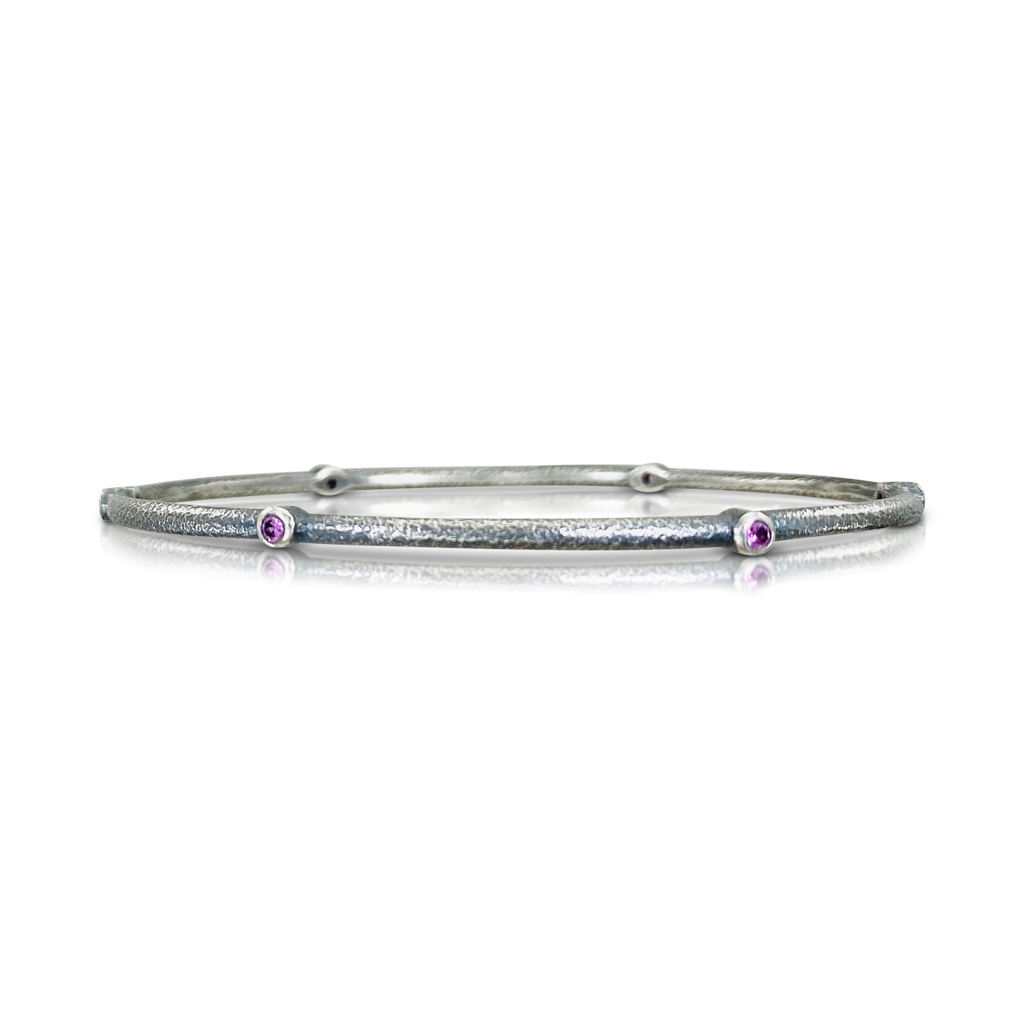 Oxidized Sterling Silver Pink Faceted Sapphires (.24ct tw) Hammered Texture Oval Shape *** If not available in your size, please fill out our custom order form and include SKU# 610-48 as a reference to this product: CLICK HERE FOR CUSTOM...Read more