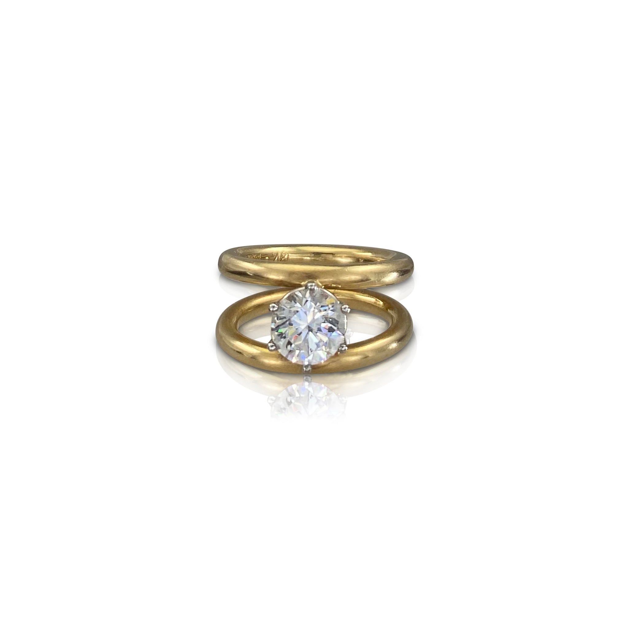 Gold Double Rail Ring with Lab Grown Round Diamond