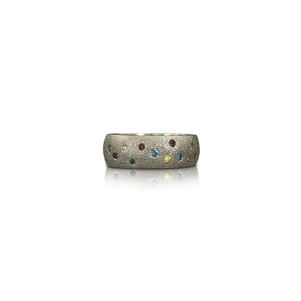 Sprinkle Band in Hammered Palladium White Gold with Multi Colored Diamonds - $4,200.00