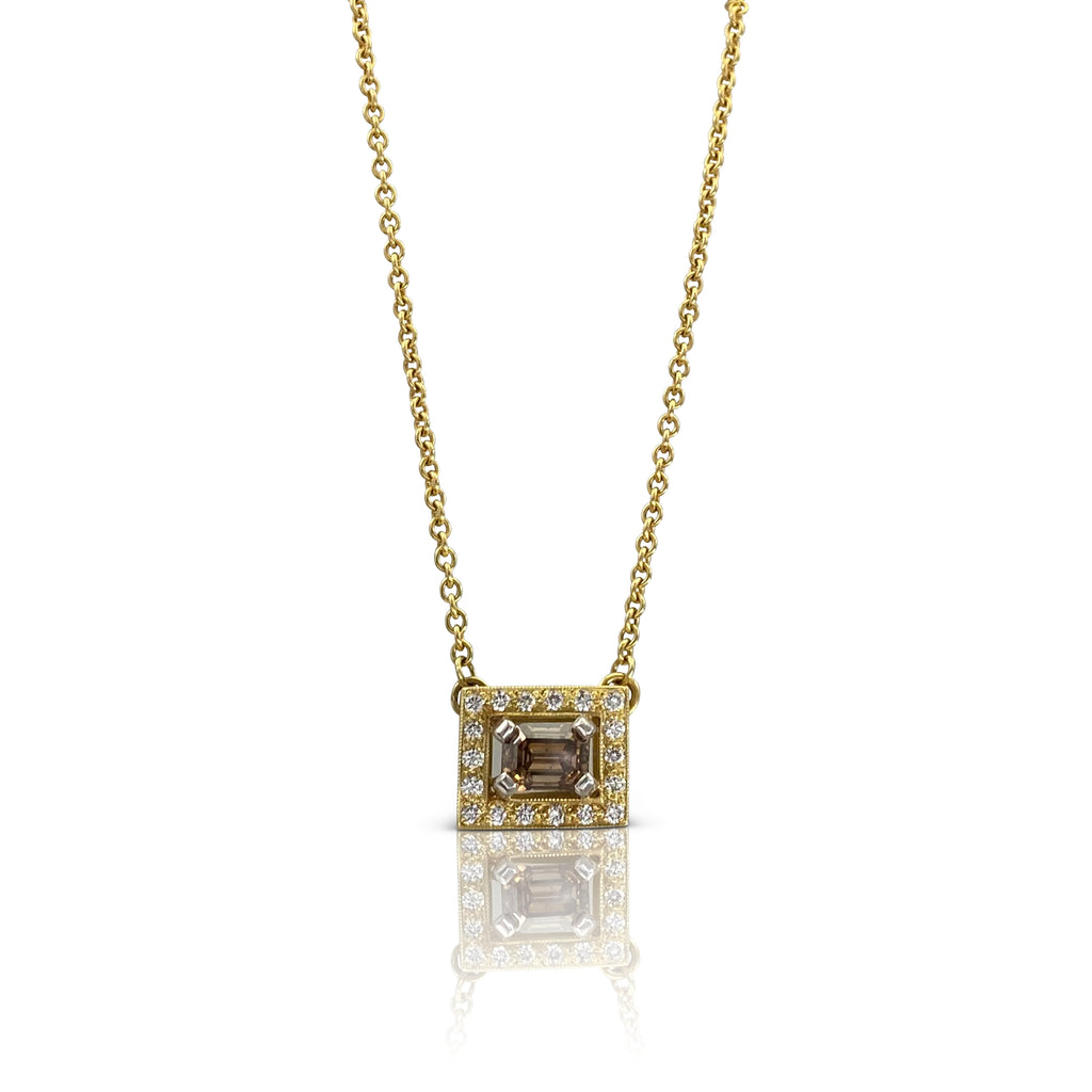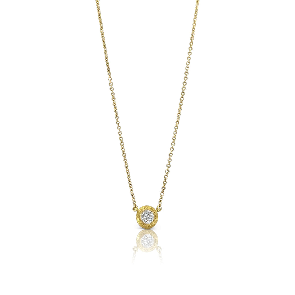 Round Diamond set in Hammered Gold Bezel Necklace - $2,400.00