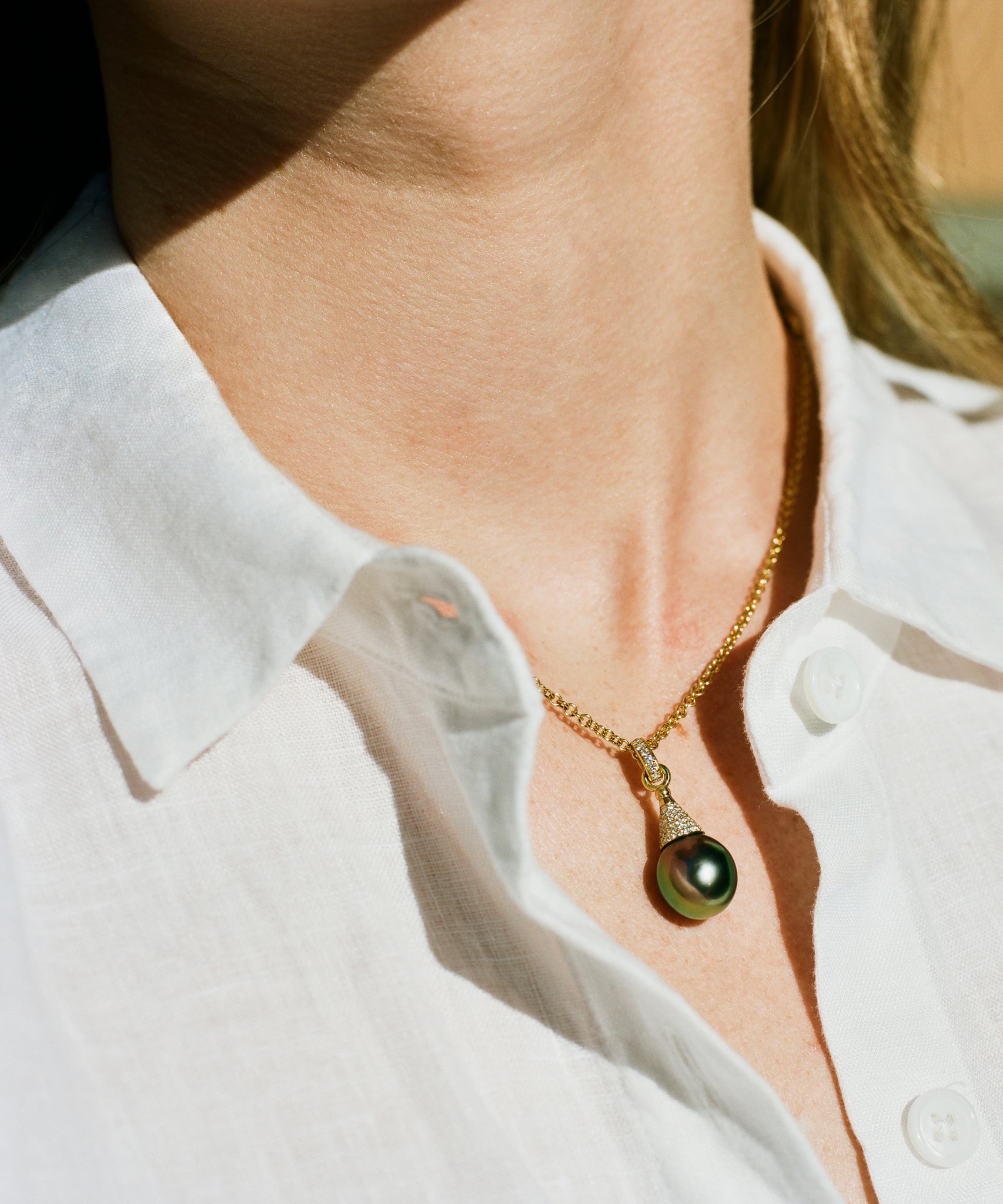 Peacock Tahitian Pearl w/Diamond Cone and Bail