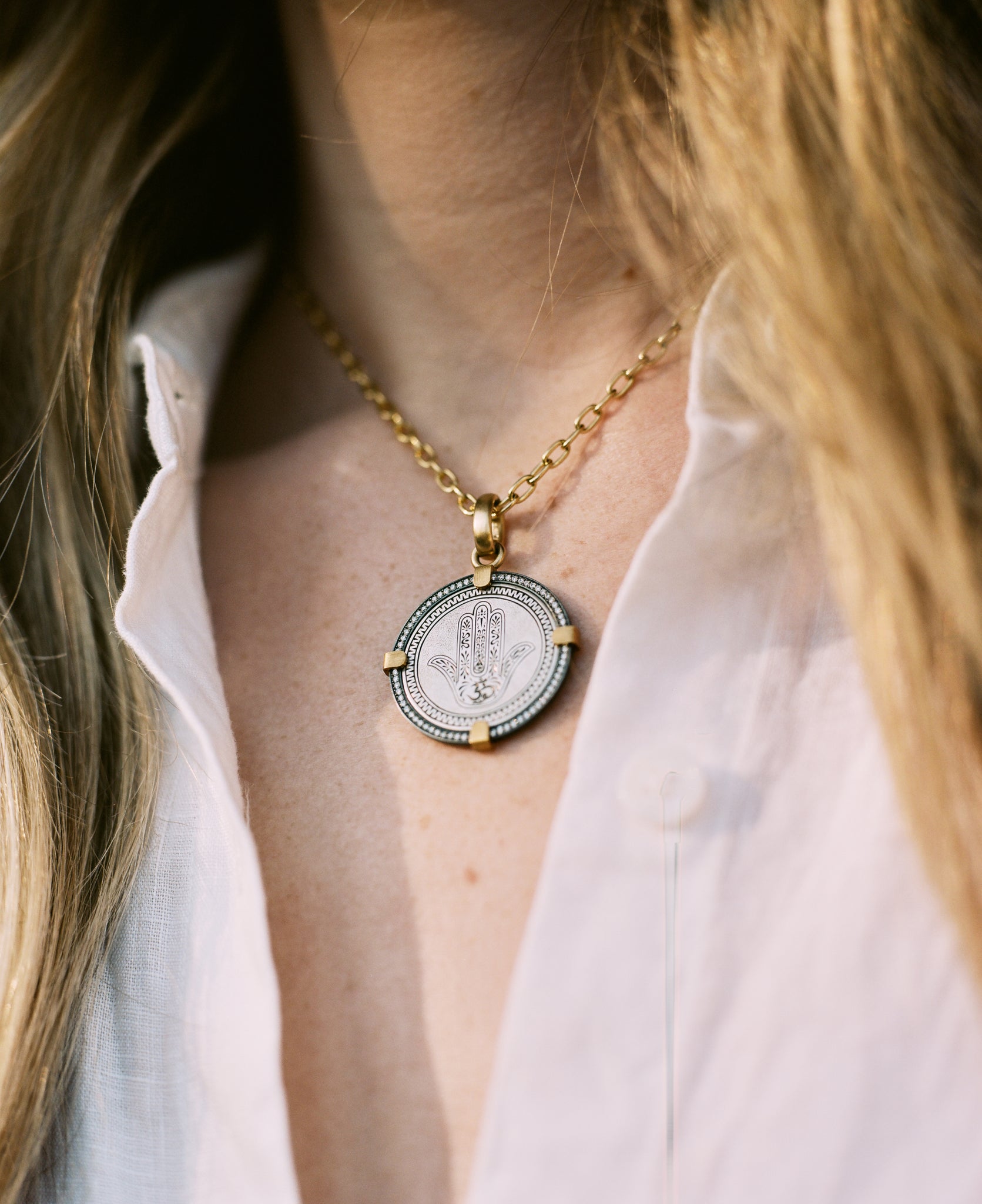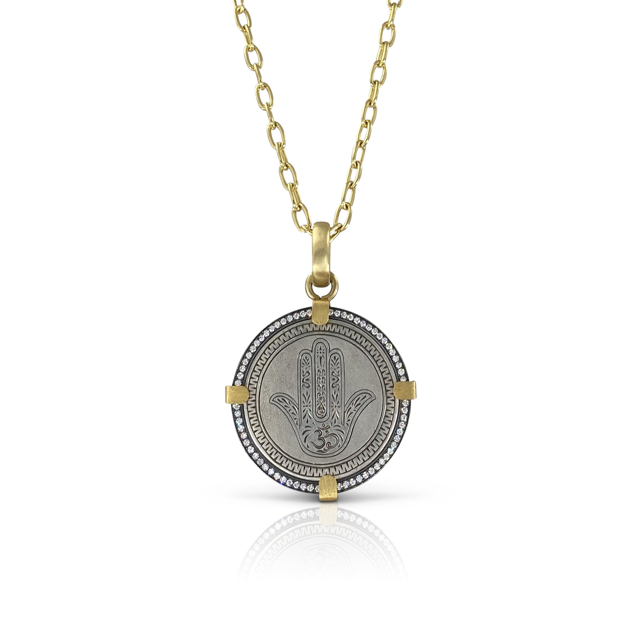 Diamond Hamsa Engraved Coin Pendant