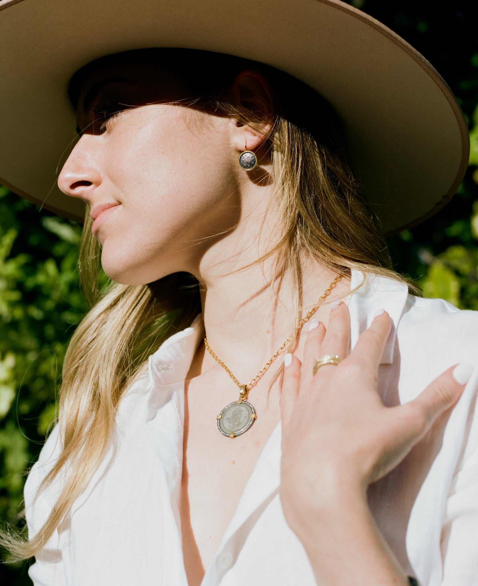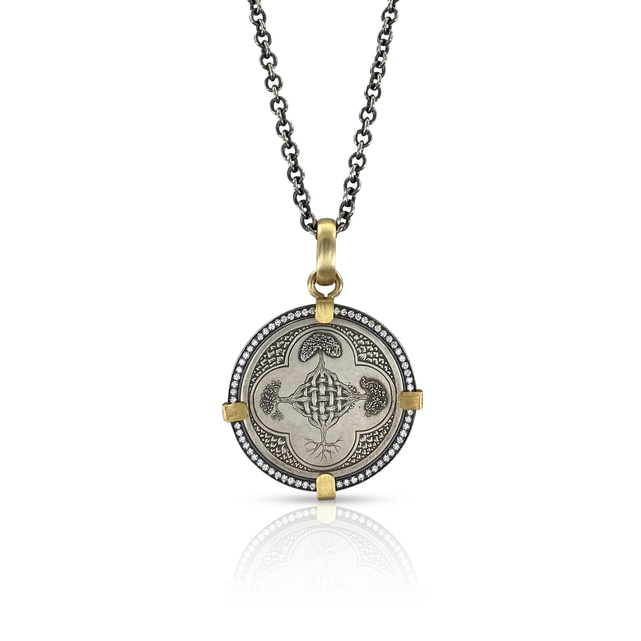 Tree of Life Engraved Sterling Silver Coin 22k Yellow Gold 18k Royal Yellow Gold Round Diamonds (.30ct tw) [Price is for pendant only. Chains are sold separately.] *** If you would like to change the design or have other ideas,...Read more