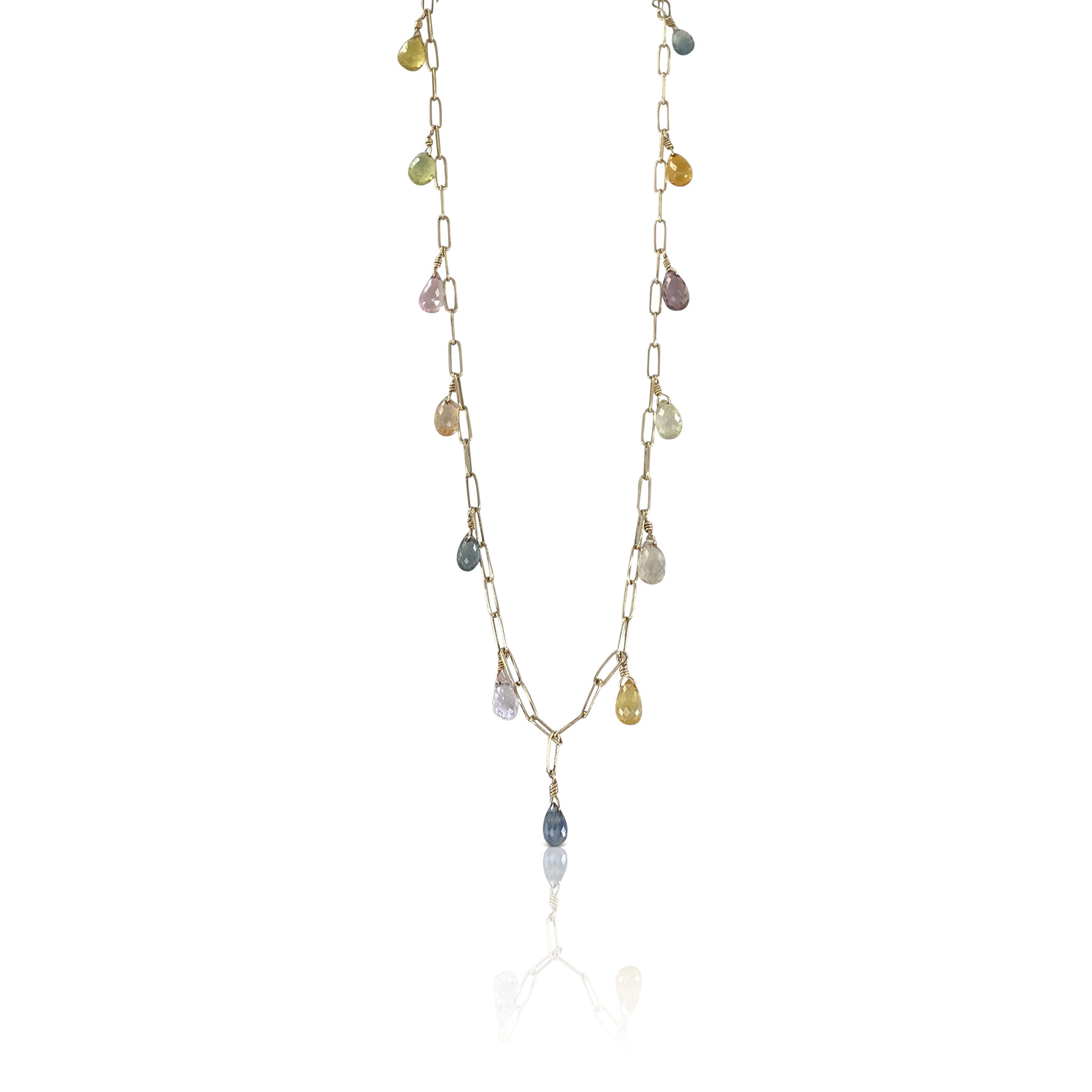 14k Yellow Gold Chain Multi Colored Sapphire Briolettes Length: 21" *** If you would like to change the design or have other ideas, please fill out our custom order form and use SKU# 245-36 as a reference to this product: CLICK HERE FOR...Read more