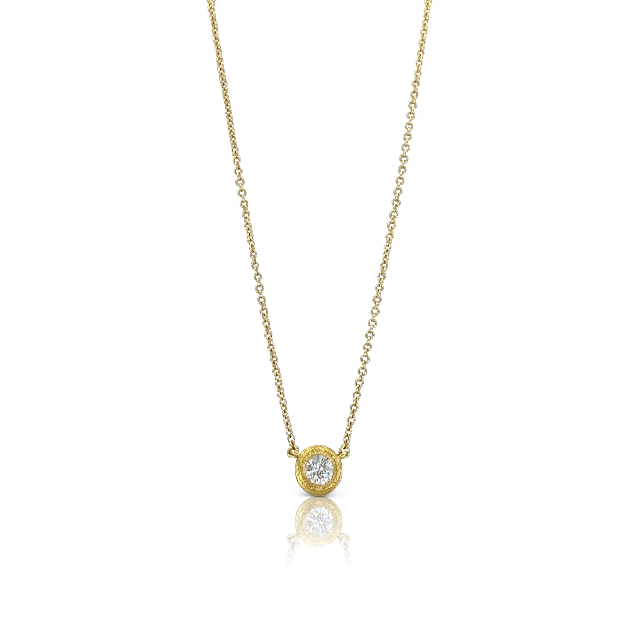 Round Diamond set in Hammered Gold Bezel Necklace