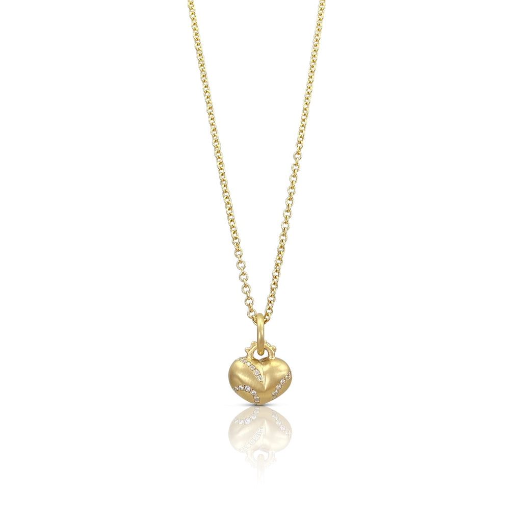 Gold Diamond Ribbon Puffy Heart Pendant - $2,600.00