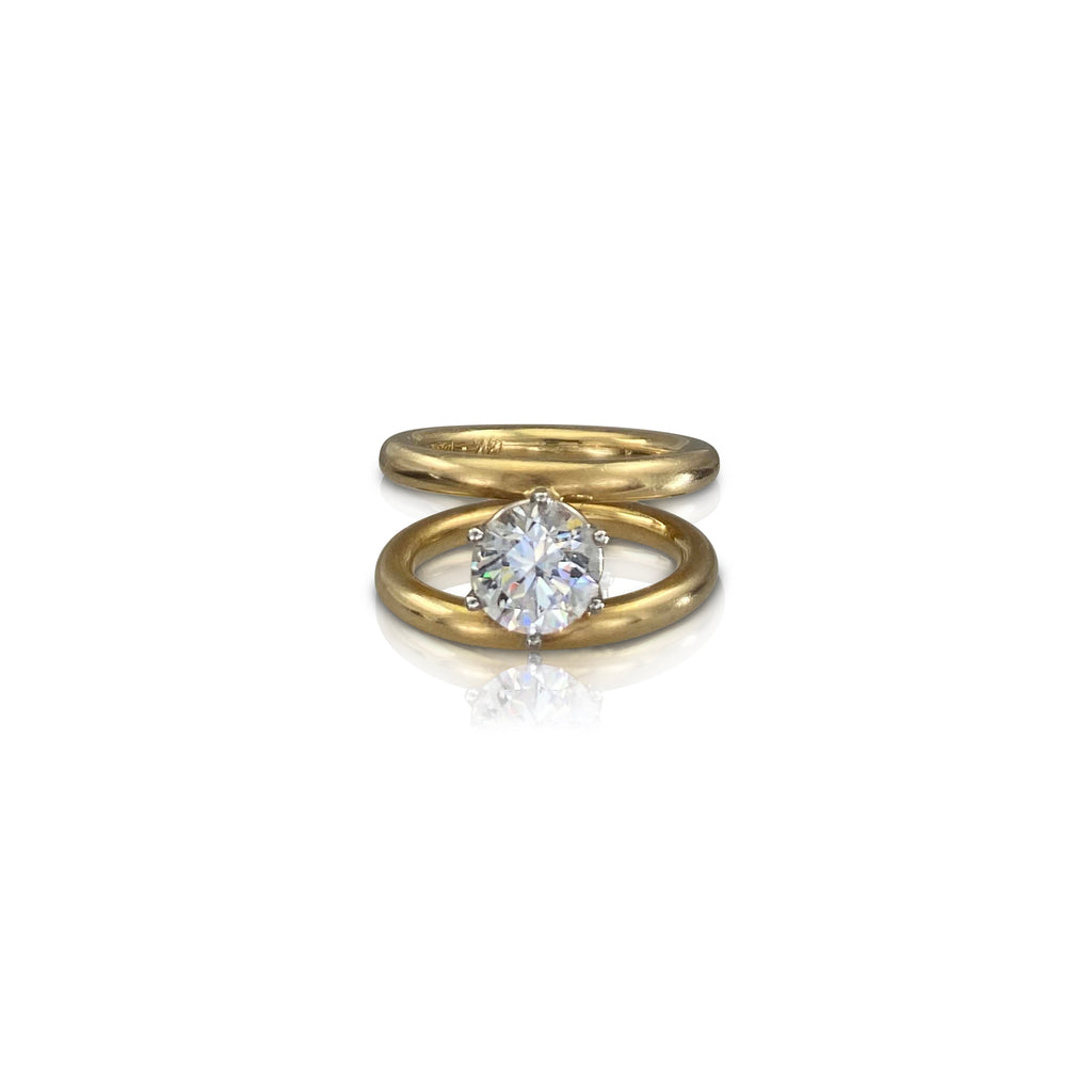 Gold Double Rail Ring with Lab Grown Round Diamond - $3,550.00