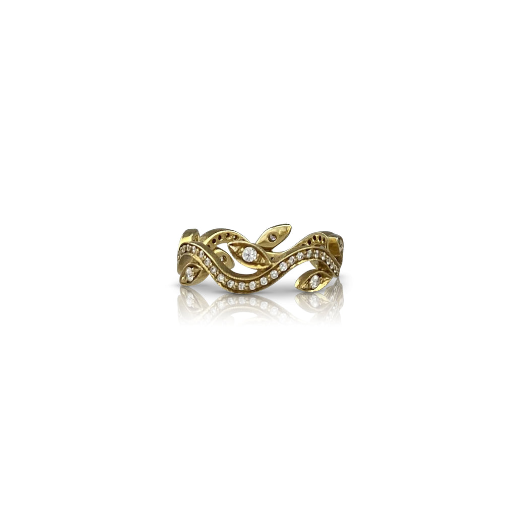 Leaf & Vine Ring in Yellow Gold with Diamonds - $3,275.00