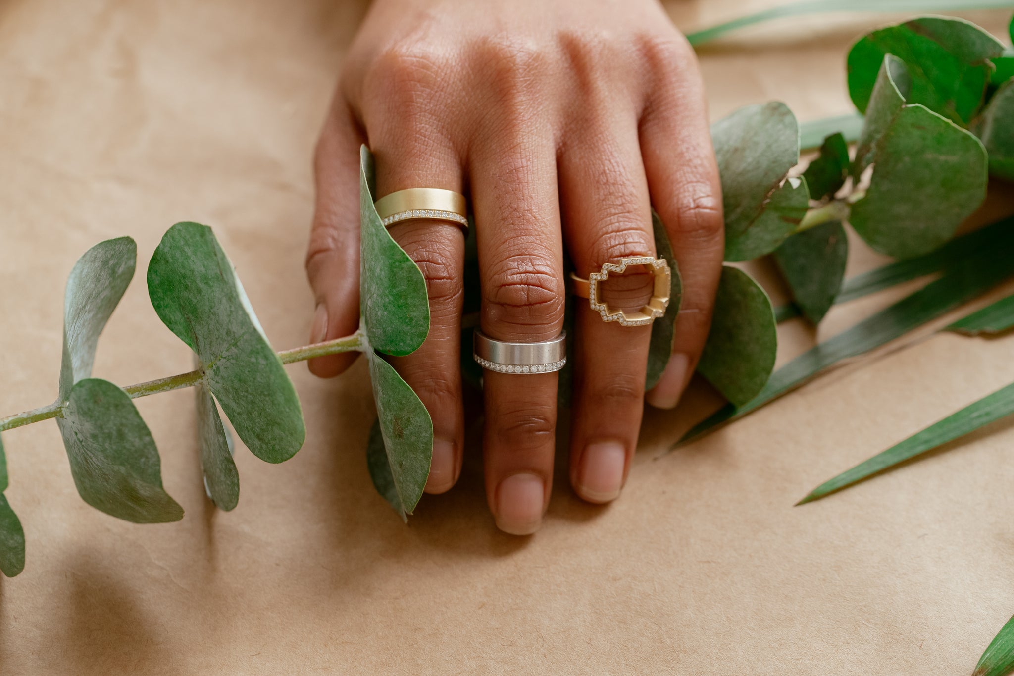Palladium Pavé Diamonds (.42ct tw) Product Note: This band has our "quadra" shape which helps the ring stay upright with the diamonds on top. *** If not available in your size, please fill out our custom order form...Read more