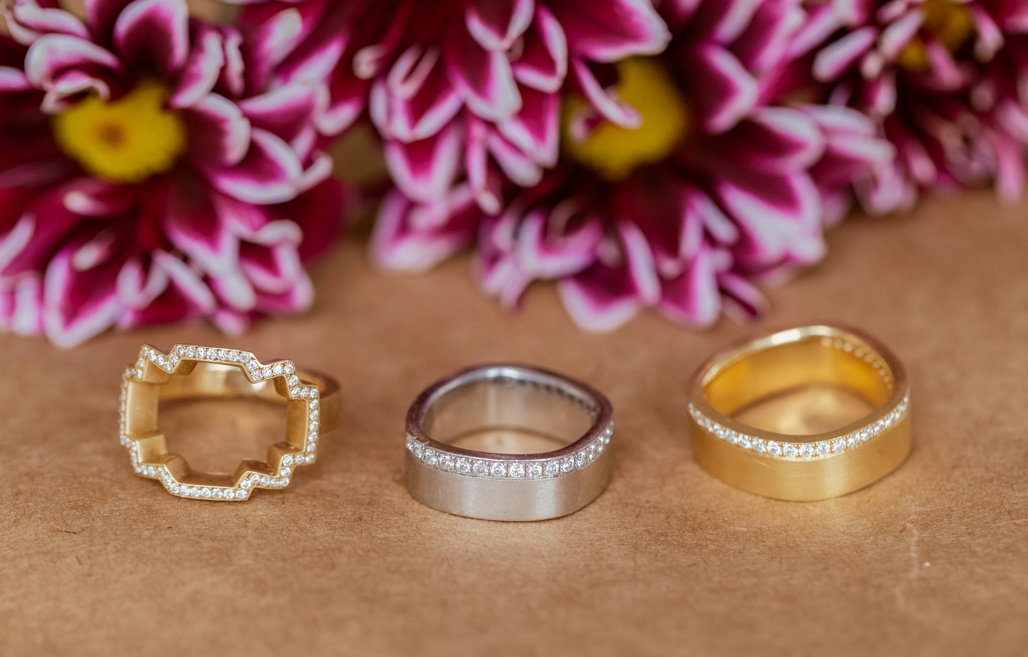 Diamond Edged Wide Band in Yellow Gold
